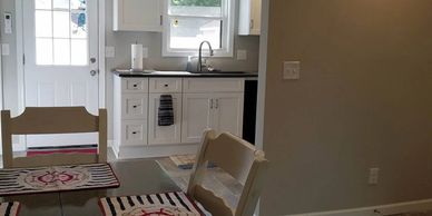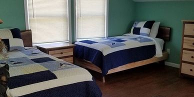 This Cozy 2 Story House with large kitchen, eat in dining area,  Living Room with electric fireplace. Master Bed Room has a Queen Size bed. Upstairs guest room , 1 Queen Size Bed,  3 twins  and one trundle. Perfect for kids or adults that don't mind sharing space.