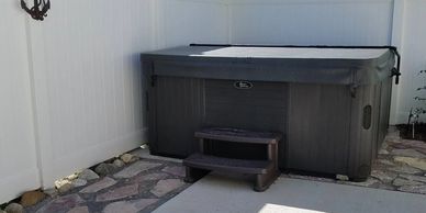 Awesome backyard space to chill at the table, gas grill and large hot tub too